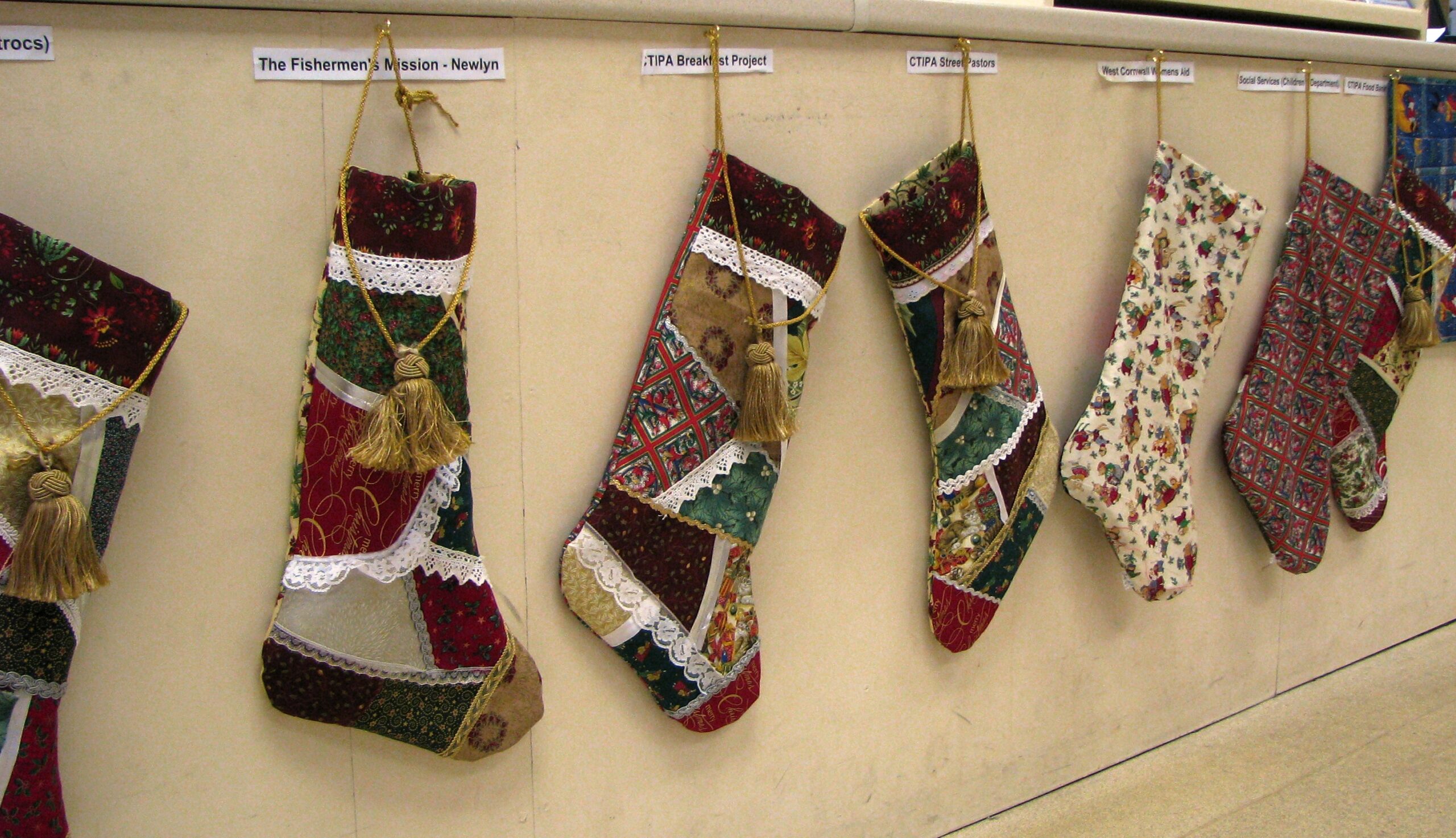 The Giving Shop is beautifully decorated with montages of the Christmas story including a local twist, stockings for financial donations, a prayer tree, a Christmas tree bearing labels with suggested presents for people to take away and bring back attached to a gift and a short video playing about the Holy Land today.
