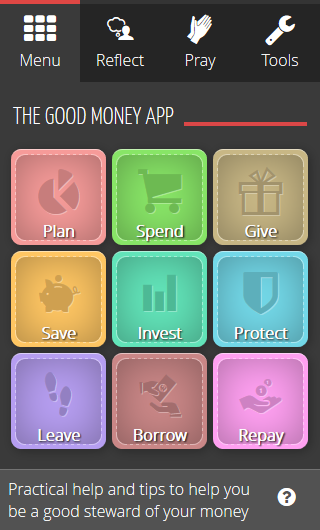Our FREE mobile phone app provides tools, tips and prayers to help Christians manage their money – whether you’ve got lots to look after, or are just scraping by.
